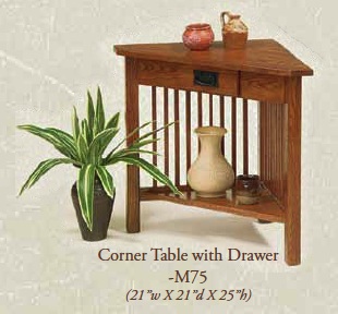 Corner Table w/drawer in Brown Maple, Oak, Cherry, or Q-S White Oak
