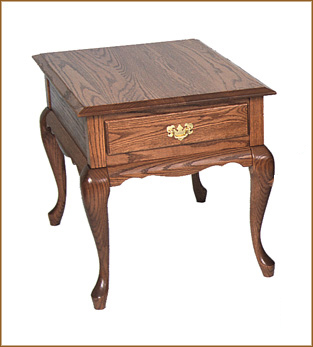 Queen Anne Rectangle End Table W/ Drawer in Oak or Cherry