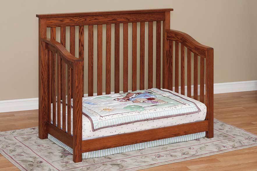 Mission Crib Package Kit, Includes Mission Crib, Toddler Bed/Day Bed conversion kit & Full Bedrails and slats. Available in Oak, Maple, Cherry