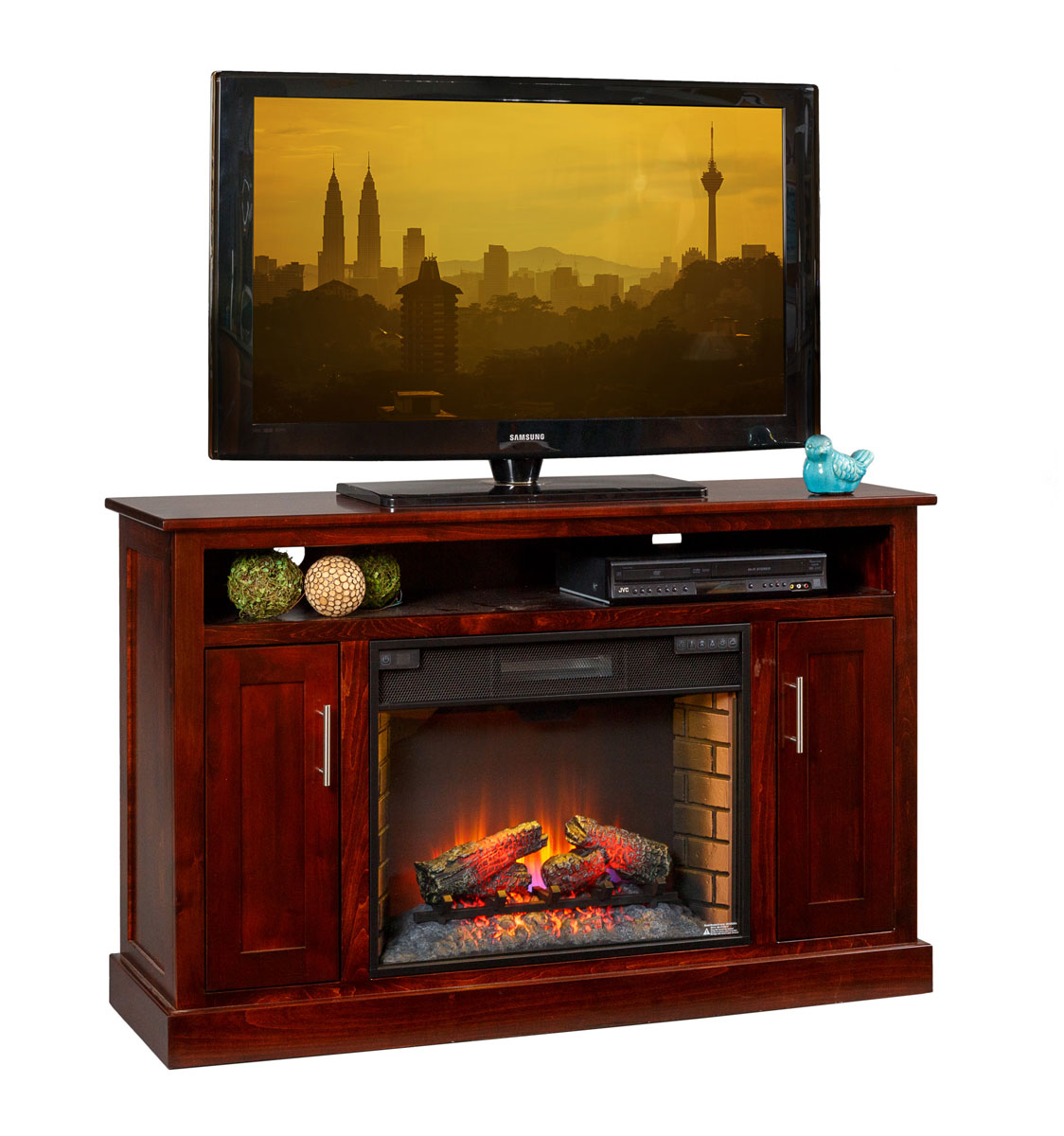 TV Stand with 28" Fireplace available in Oak Clean, Stain Grade Maple, or Cherry Quarter Sawn White Oak.