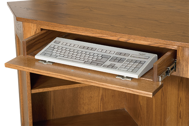 Corner Computer Desk available in Oak, Cherry, Maple or Quarter Sawn White Oak. Corner top and keyboard drawer optional.