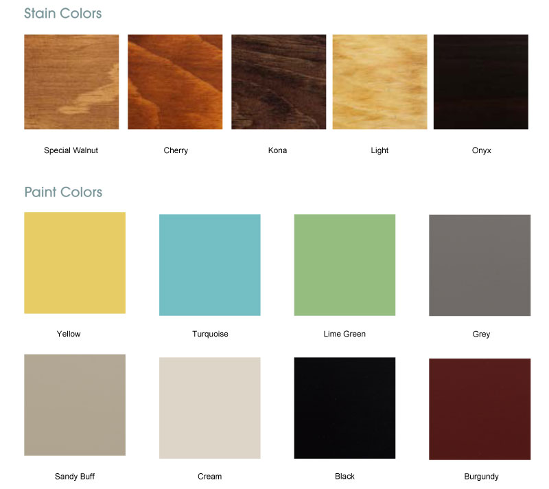 Each piece can be configured with your choice of stain or paint, or you may choose unfinished wood. Please consult the